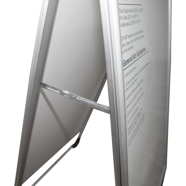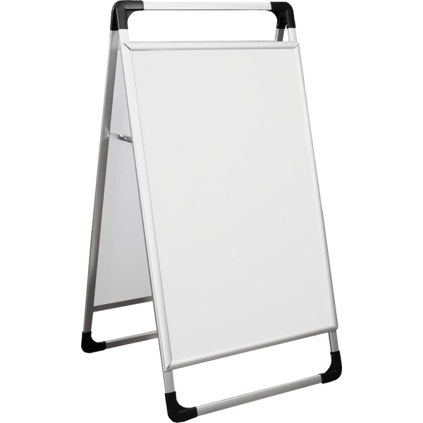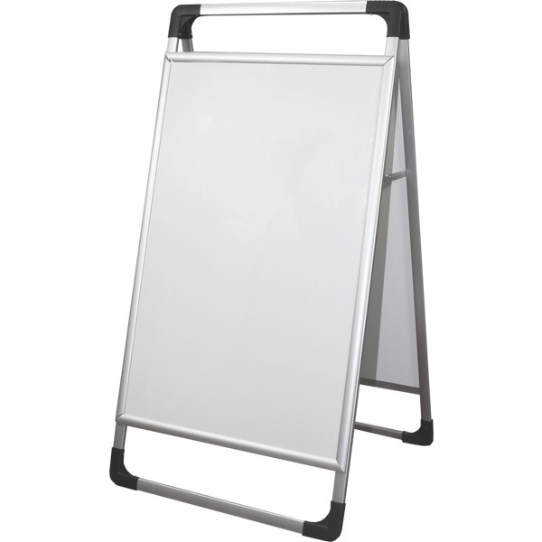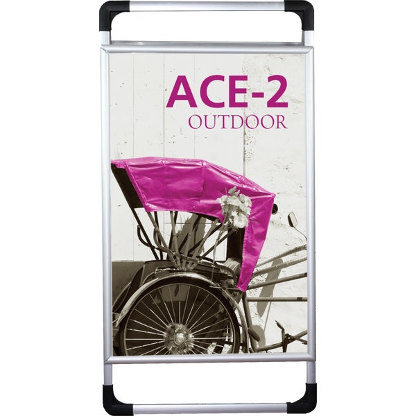 The Ace-2 Outdoor Sign is a sturdy, yet lightweight double-sided silver aluminum A-frame sign, perfect for storefronts, sidewalks, gas stations, car dealerships and so much more. The Ace-2 features snap frames on both sides for easy poster size graphic insertion and replacement. The Ace-2 sign fits rigid posters/graphics that are 24″w x 36″h. The Ace-2 comes with Dry Erase lenses for both sides, allowing for customized messages that can be easily added, changed or removed!