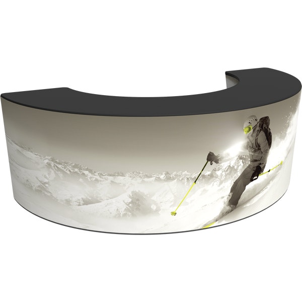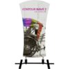 The Contour Wave 2 with steel plate base is a heavy-duty double-sided sign with an hourglass shape that utilizes hook and loop connections to make graphic changes quick and simple. The discreet plate base comes with four ground stakes for added stability.