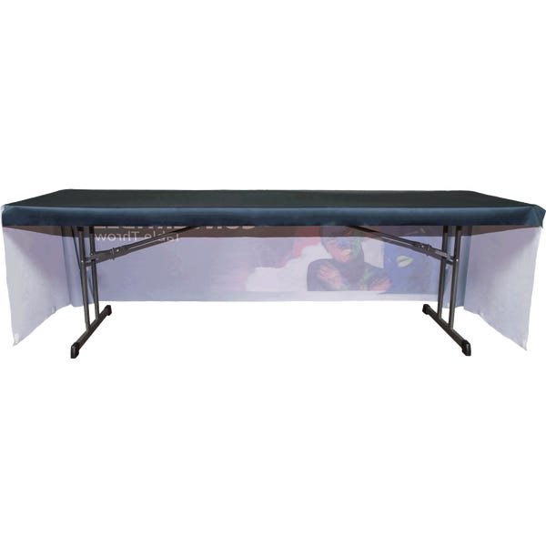 – Standard 8ft table: 96″W x 30″H x 30″D