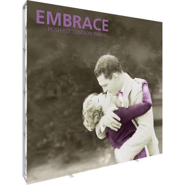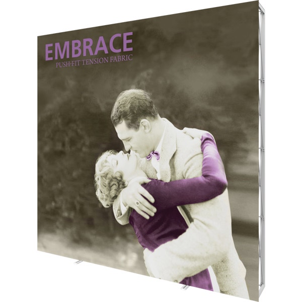 Embraceâ„¢ 10ft extra tall (4 Quad x 4 Quad) is a sleek, collapsible, portable display that delivers style with minimal effort. Embrace 10ft extra tall (4 Quad x 4 Quad) features a sleek, collapsible white frame with channel bars that hold push-fit fabric graphics offered with or without endcaps. No tools are required for assembly. The lightweight and highly portable display packs away as easily as it sets up for the ideal tradeshow, event or retail display!