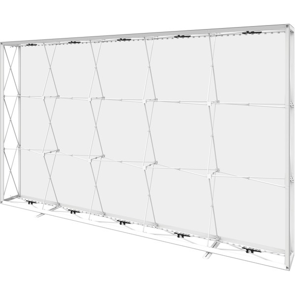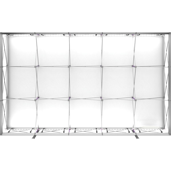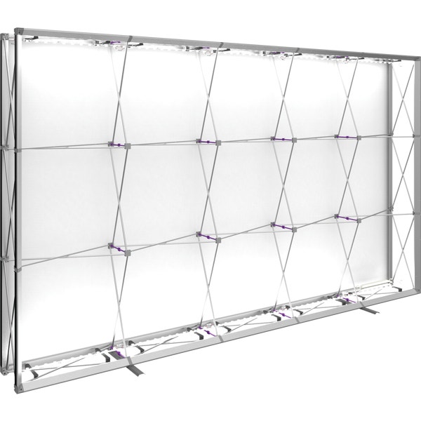 The Embraceâ„¢ 12.5ft (5 Quad x 3 Quad) backlit push-fit fabric display is a sleek illuminated collapsible display. The Backlit Embrace makes it simple to make a big impact in minutes with easy-to-attach patent-pending LED lighting and a push-fit backlit graphic that attaches to channel bars around the perimeter of the frame. Simply attach lights to the collapsible frame and insert the graphic into the channel bars for an impactful illuminated display solution! Graphics available as single or double-sided with endcaps. No tools are required for assembly. A protective molded case for storage and transport are included. Option available to purchase frame, LED lights and case only.