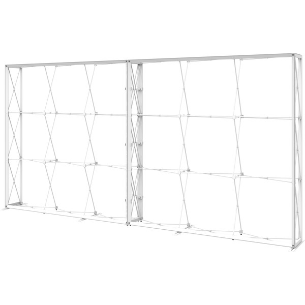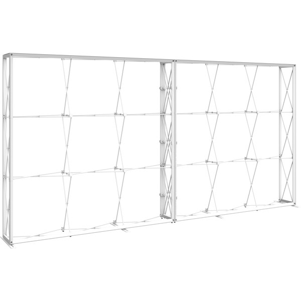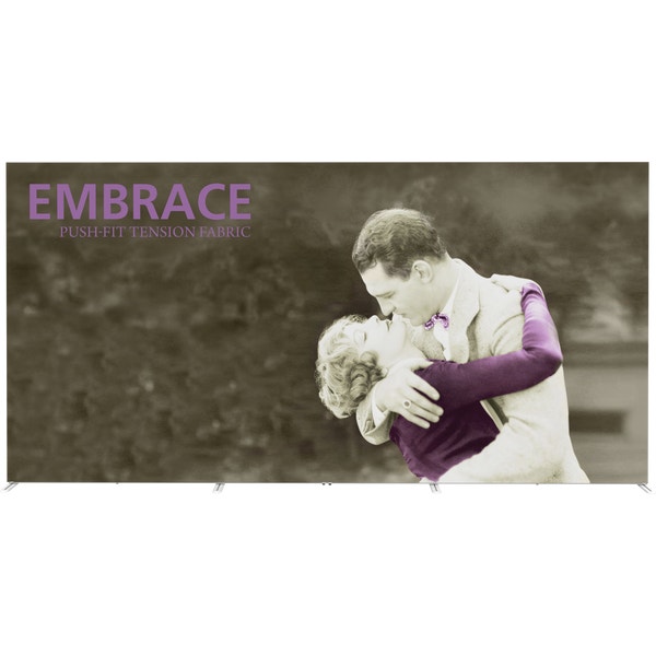 The Embraceâ„¢ 15ft wide full height (6 Quad x 3 Quad) fabric display is sleek, collapsible and portable. The kit is comprised of two 3×3 units|includes a white collapsible frame, channel bars that hold the push-fit fabric graphic, and one large, seamless push-fit fabric graphic offered with or without endcaps, single or double sided. No tools are required for assembly. The lightweight and highly portable display packs away as easily as it sets up for the ideal tradeshow, event or retail display!