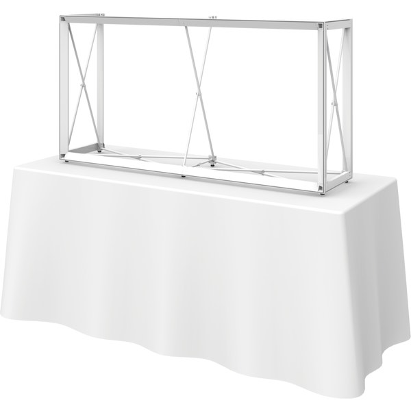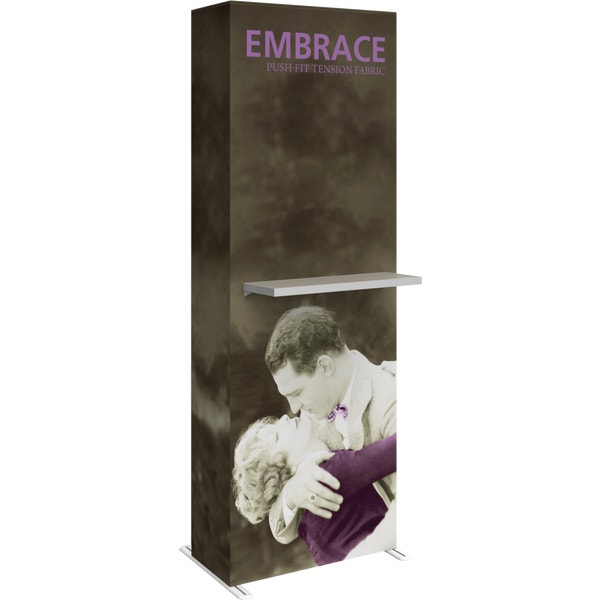 Embraceâ„¢ 5ft (2 Quad x 1 Quad) is a sleek, collapsible, portable tabletop display that delivers style with minimal effort. Embrace 5ft (2 Quad x 1 Quad) features a sleek, collapsible white frame with channel bars that hold push-fit fabric graphics offered with or without endcaps. No tools are required for assembly. The lightweight and highly portable display packs away as easily as it sets up for the ideal tabletop display!