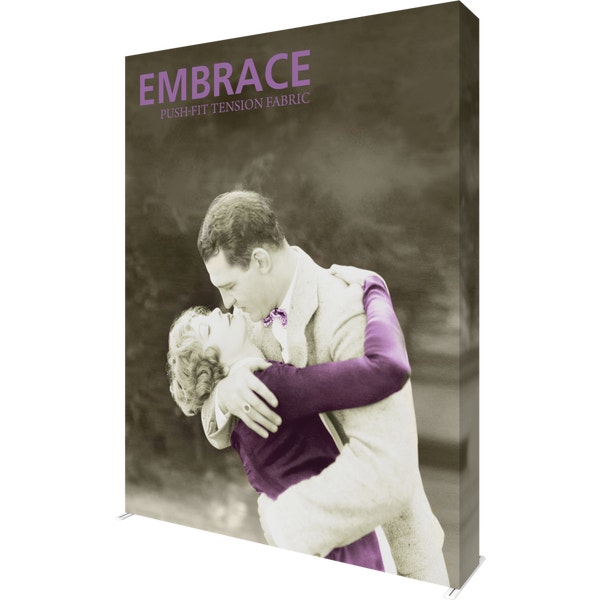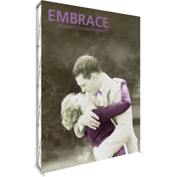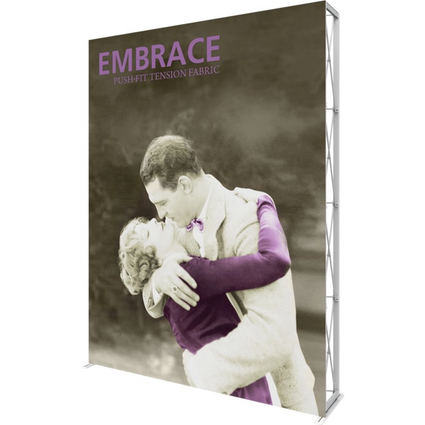 Embraceâ„¢ 7.5ft extra tall (3 Quad x 4 Quad) is a sleek, collapsible, portable display that delivers style with minimal effort. Embrace 7.5ft extra tall (3 Quad x 4 Quad) features a sleek, collapsible white frame with channel bars that hold push-fit fabric graphics offered with or without endcaps. No tools are required for assembly. The lightweight and highly portable display packs away as easily as it sets up for the ideal tradeshow, event or retail display!