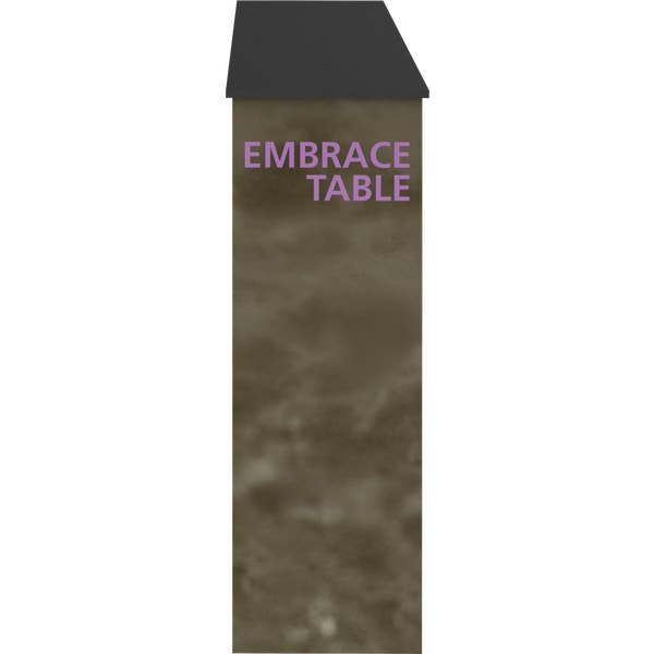 The Embraceâ„¢ Table is a sleek, collapsible return table that delivers style, functionality and storage to any Embrace backwall display. Featuring the same white expandable frame and push-fit SEG graphics as Embrace backwalls, this lightweight and portable accessory is the perfect accent. Tabletop offered in black for a modern appearance.