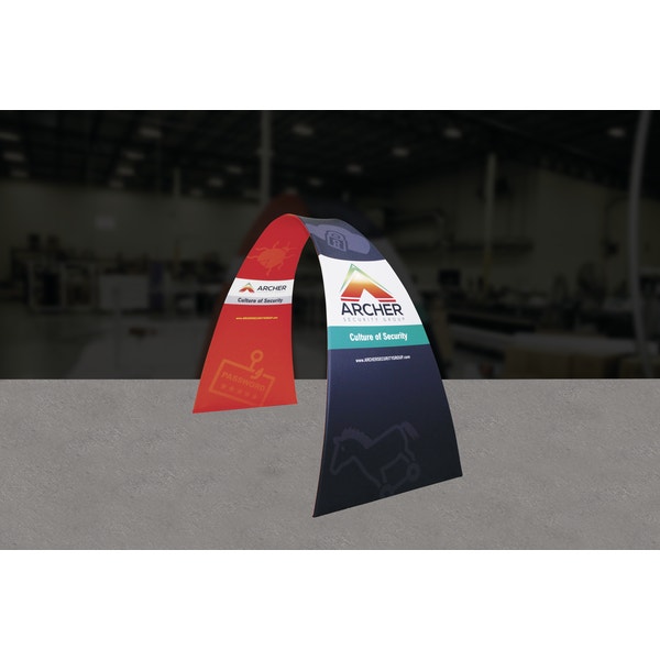 Formulate® 10ft Arch 02 adds architecture and design to any event or interior space! Easily create and define a stunning entryway, focal point or stage set at your next trade show or event. Formulate 10ft Arch 02 combines pillowcase style stretch fabric graphics with 30mm curved aluminum tube frames; these super structures are made in the USA and collapse to a fraction of their size. Arch 02 packs easily into one wheeled OCE case for easy storage and transport.