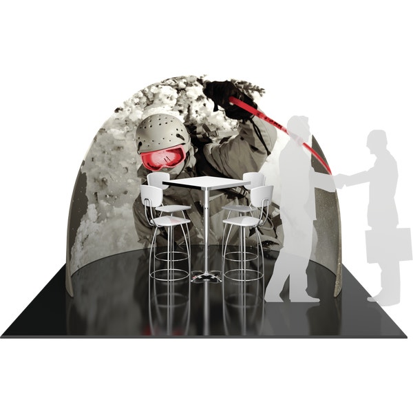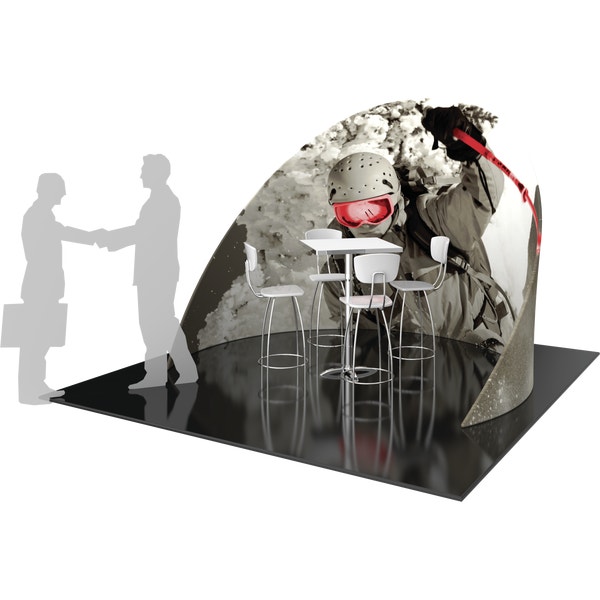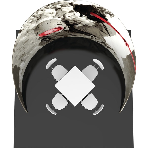 The Formulate® Chip Wall 02 is a curved conference room divider that stands 6ft 4in tall and is 9ft 5in wide. Pairing a lightweight aluminum tube frame and pillowcase fabric graphic, it is an ideal structure to create a semi-private conference or meeting area, or projection wall within a space.