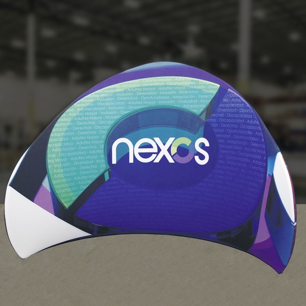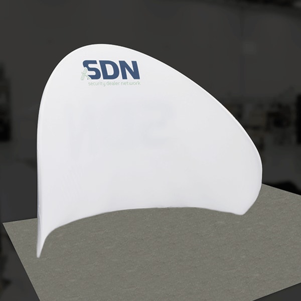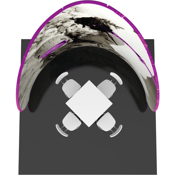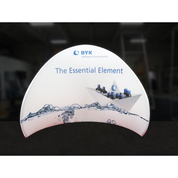Formulate® Chip-Shaped Fabric conference wall is a lightweight, stylish solution to your meeting space needs. Ergonomically designed, the single or double sided Chip-Shaped Fabric Wall combines the latest developments in fabric printed technology with gently curved 50mm aluminum frames to create private, cozy and stylish conference areas within any space. The Chip-Shaped Wall packs easily into one wheeled OCE case for easy storage and transport.