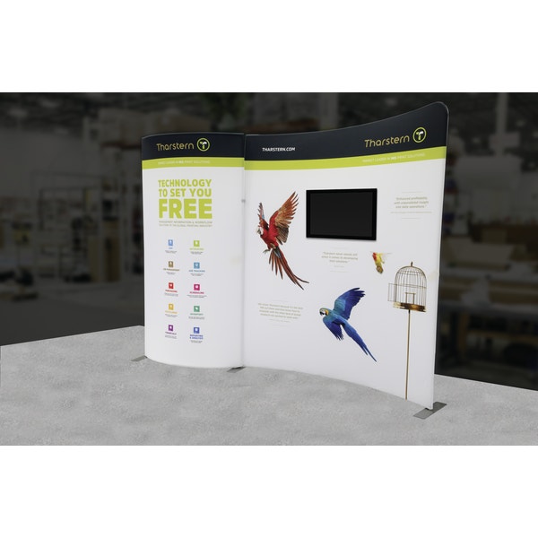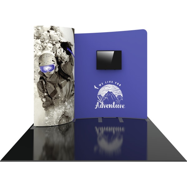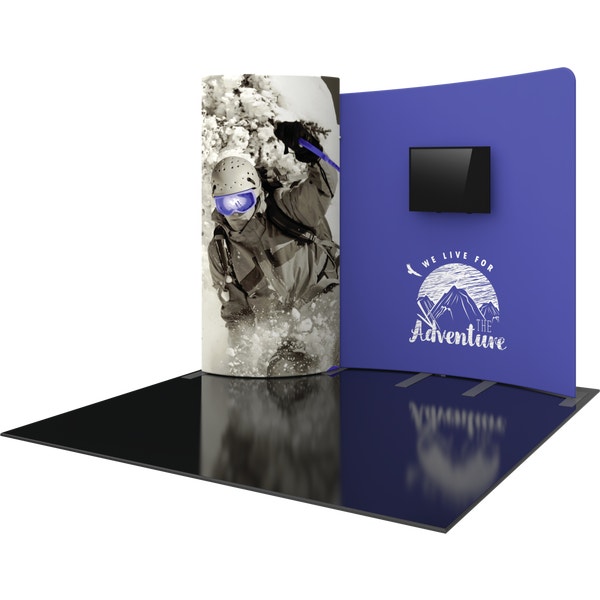 Formulate® Designer Series 10ft Fabric backwall Kit 01 has unique stylistic features and shapes, is portable and is easy to assemble. The two aluminum tube frames feature spigot connections and zipper pillowcase fabric graphics. A curved panel draws the eye, and integrated monitor mount that holds a medium monitor makes it easy to incorporate digital messaging. Designer Series Kit 01 comes in two portable, wheeled transit cases for easy storage and transport. Assembly and graphic attachment is easy – simply pull the pillowcase fabric graphics over the frame and zip.