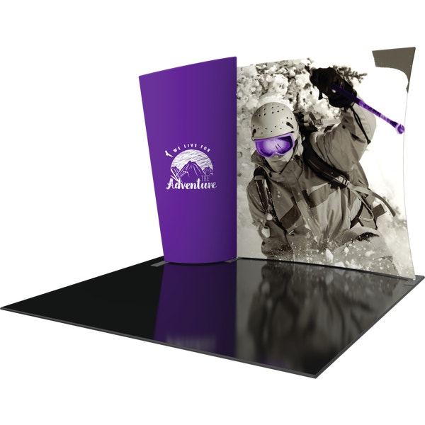 Formulate® Designer Series 10ft Fabric backwall Kit 04 is contemporary display that will make you noticed on the show floor. The exhibit consists of two aluminum tube frames featuring spigot connections and simple pullover zipper pillowcase fabric graphics. Designer Series Kit 04 comes in a portable, expandable wheeled transit case for easy storage and transport. Assembly and graphic attachment is easy – simply pull the pillowcase fabric graphics over the frame and zip.