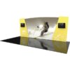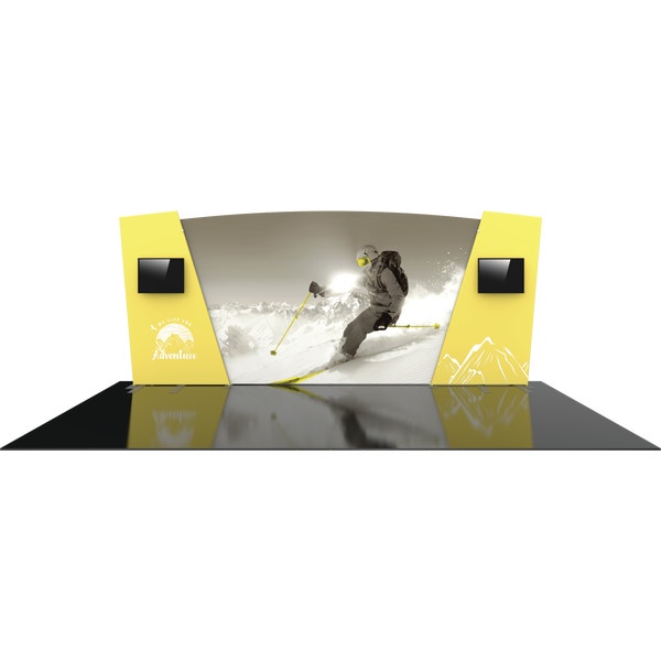 Formulate® Designer Series 20ft Backwall Kit 06 combines multimedia with ample real estate for a prominent message. Kit 06 includes three aluminum tube frames with snap-buttons/spigot connectors, three zipper pillowcase fabric graphics and two monitor kiosks that support medium monitors for multimedia presentations. Assembly is simple – connect the tubes, place the monitor mount kiosks, pull the graphics over the frames and zip.
