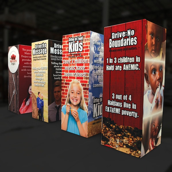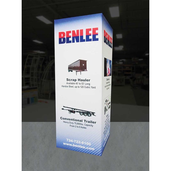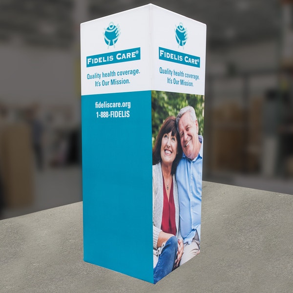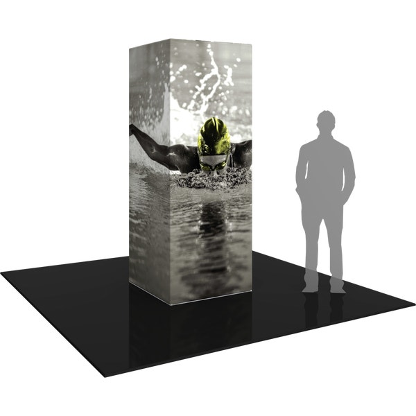The Formulate® 8ft Four Sided Fabric Tower 03 can transform any environment through form, fabric and lighting. The rectangular-shaped tower is 8ft tall and 3ft square at the top and bottom. Formulate Four Sided Fabric Tower 03 combines the latest developments in fabric printed technology with aluminum tube frames to add dimension, decor and sculpture to any event, stage set, tradeshow booth or interior space. Simply mix and match with other Formulate towers to add architecture and drama to any event or interior space. Formulate Tower 03 accommodates internal LED lighting (sold separately) to create a glowing effect. Four Sided Tower 03 packs easily into a wheeled OCL case for easy storage and transport.
