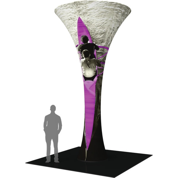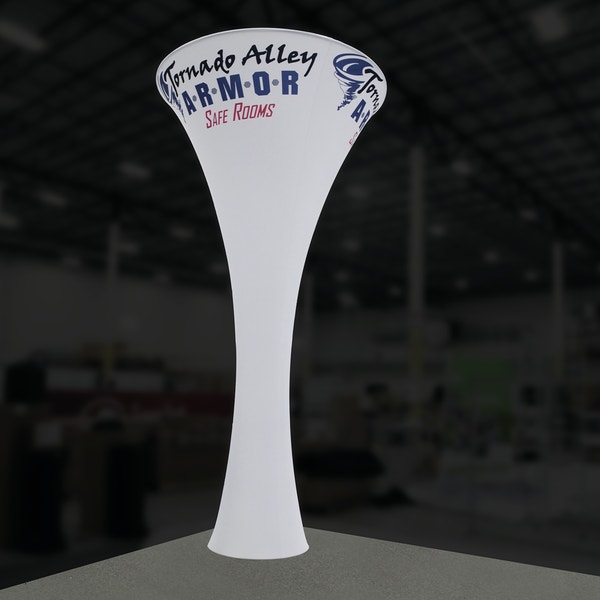 The 16ft Formulate® Fabric Funnel 02 can transform any environment through form, fabric and lighting. Formulate Funnel 02 measures 16ft tall, and features a heavy-duty wooden base and silver powder coated truss interior to create a dynamic, towering structure that commands attention. Fabric graphics feature a zipper at the top and a silicone edge at the bottom for easy assembly. Accent LED light kits are not included, but can be purchased a la carte to add a glow within the funnel. Funnel 02 packs down into two wheeled OCH2 cases for easy storage and transport.