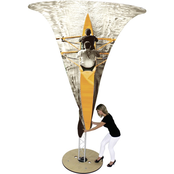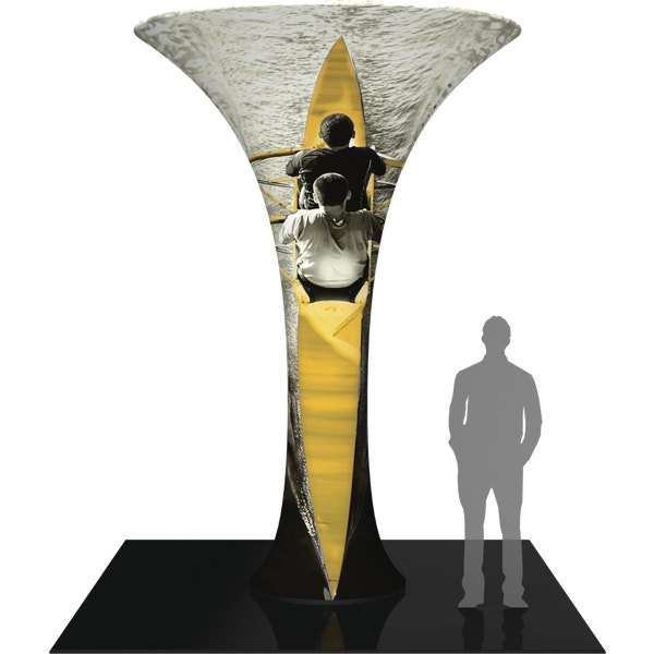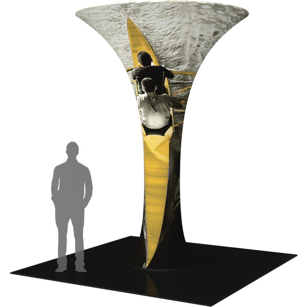 The 12ft Formulate® Fabric Funnel 03 can transform any environment through form, fabric and lighting. Formulate Funnel 03 measures 12ft tall, and features a heavy-duty wooden base and silver powder coated truss interior to create a dynamic, towering structure that commands attention. Fabric graphics feature a zipper at the top and a silicone edge at the bottom for easy assembly. Accent LED light kits are not included, but can be purchased a la carte to add a glow within the funnel. Funnel 03 packs down into two wheeled OCH2 cases for easy storage and transport.