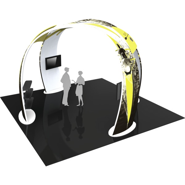 – Kit includes: aluminum tube frames and dye-sublimated zipper pillowcase fabric graphics for the two arch structures, three centered fabric accents, six shelves, two monitor mounts and 1 WOODCRATE-H