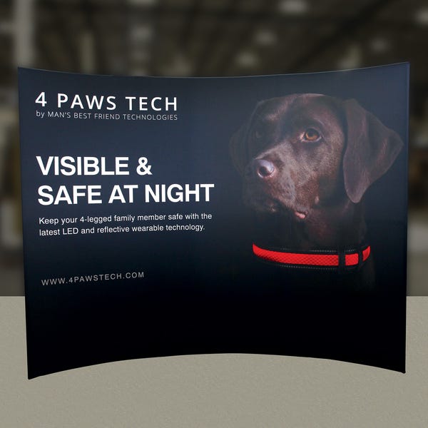 Lumina 8-50 watt halogen lighting, literature pocket, stand-off graphic shelf, graphic header, larger freight cases