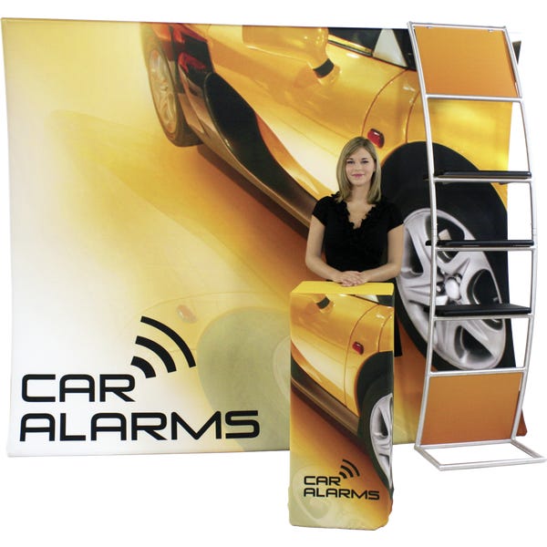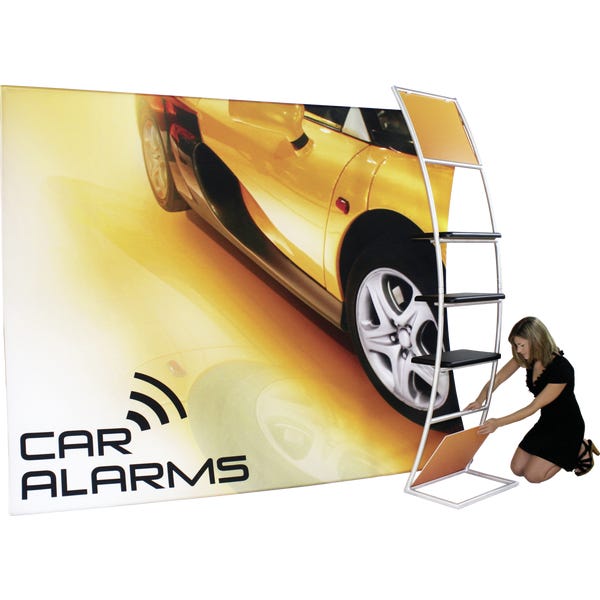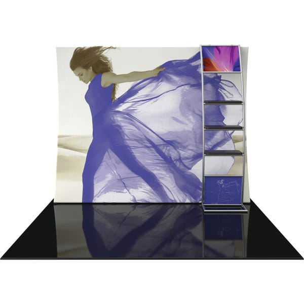 The Formulate® VC10 Vertical Curve 10ft Fabric Display is designed to make an impact at events and trade shows, as well as a multitude of other environments. This exhibit kit features a stand-off accent ladder with three 23″ shelves to display products with elegance. Durable stretch fabric pillowcase graphics pull over an aluminum tube frame and zip for a quick and easy set up.