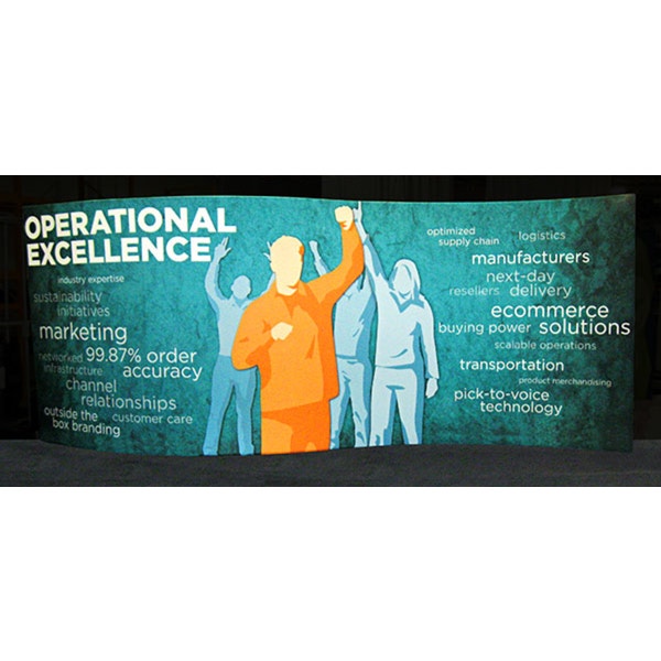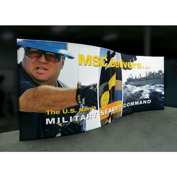 The Formulate® 20 WSC1 Serpentine Curve 20ft Fabric Display is a sophisticated, ergonomically designed exhibit booth that state-of-the-art zipper pillowcase dye-sublimated fabric coverings with advanced lightweight aluminum structures to provide unique design, functionality, and style. Stretch fabric graphics are hand-sewn, durable and dry-cleanable.