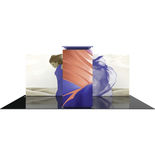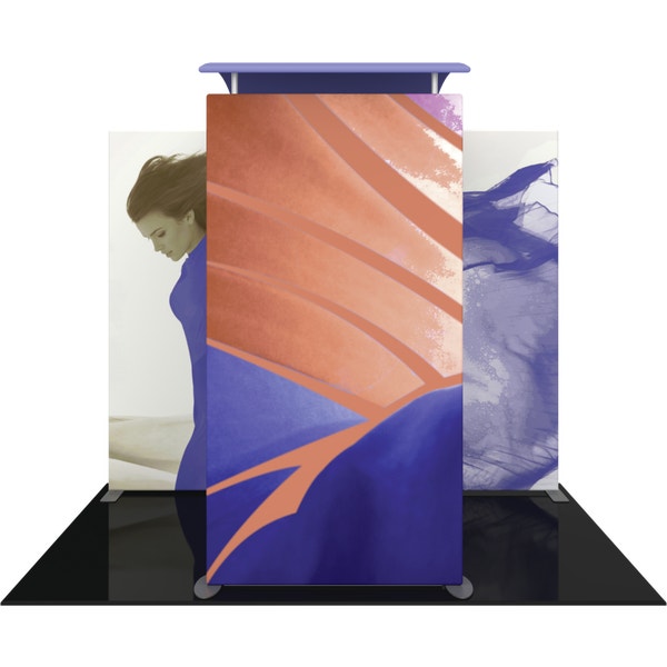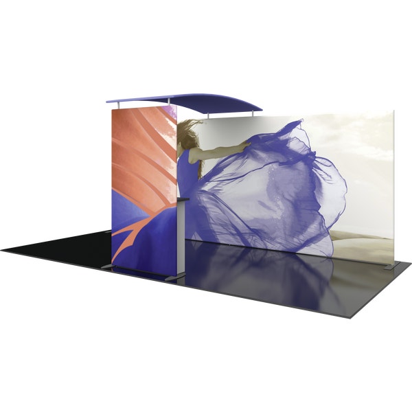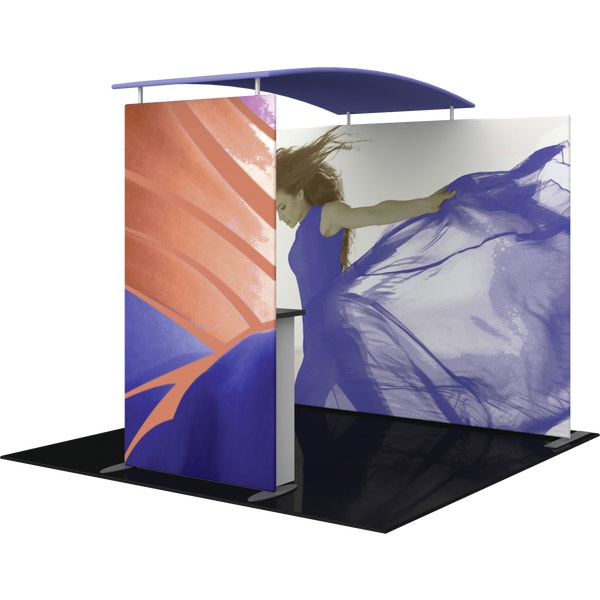The Formulate® Master Backwall Accent 06 is an ideal dimensional accessory to connect to a Formulate Master 20ft or 30ft straight backwall that is being used in a Peninsula or Island exhibit space. It features a simply tube frame, pillowcase fabric graphic canopy, table top and connects easily to create the appearance of one seamless display.