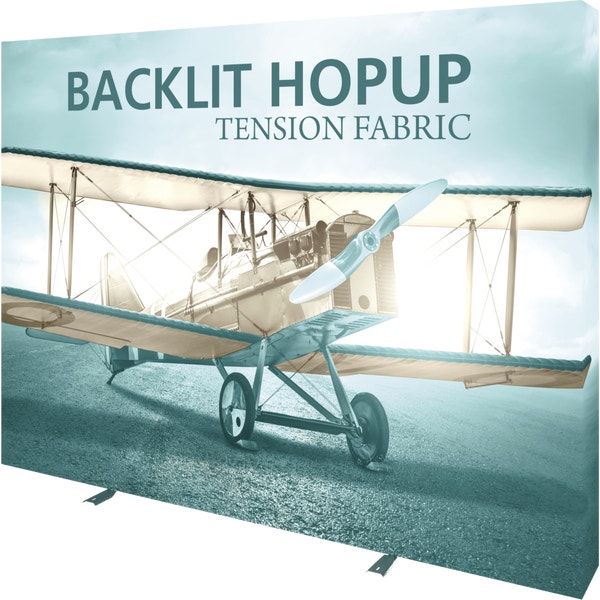 The Hopupâ„¢ 10ft (4 Quad x 3 Quad) backlit display is an expandable, illuminated display that can be set up in minutes. The Backlit Hopup creates a dynamic display with vibrant LED lights that are long-lasting. LED light attachment is simple! Simply connect the lights to the scissor arms, tether the cords, plug in and you have an illuminated backwall, exhibit or sign. No tools are required for assembly. A rolling carry bag and protective molded case for storage and transport are included. Option available to purchase frame, lights and case only.