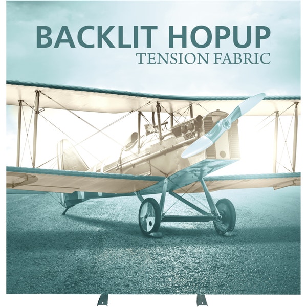 The Hopupâ„¢ 7.5ft (3 Quad x 3 Quad) backlit display is an expandable, illuminated display that can be set up in minutes. The Backlit Hopup creates a dynamic display with vibrant LED lights that are long-lasting. LED light attachment is simple! Simply connect the lights to the scissor arms, tether the cords, plug in and you have an illuminated backwall, exhibit or sign. No tools are required for assembly. A rolling carry bag and protective molded case for storage and transport are included. Option available to purchase frame, lights and case only.