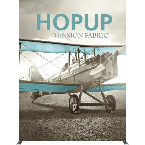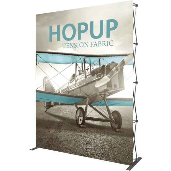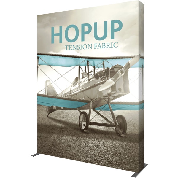 Hopupâ„¢ 7.5ft (3 quad x 4 quad) straight extra tall pop up display provides additional space for messaging and branding, measuring nearly 10ft tall. Graphics are available with or without endcaps, and come pre-attached to the collapsible frame. Simply expand the frame in seconds for a portable, impactful display – no tools required. Hopup is a perfect accent for trade show and event spaces of any size. A wheeled carry bag simplifies shipping and transportation.