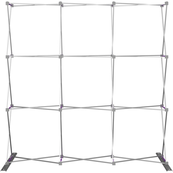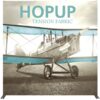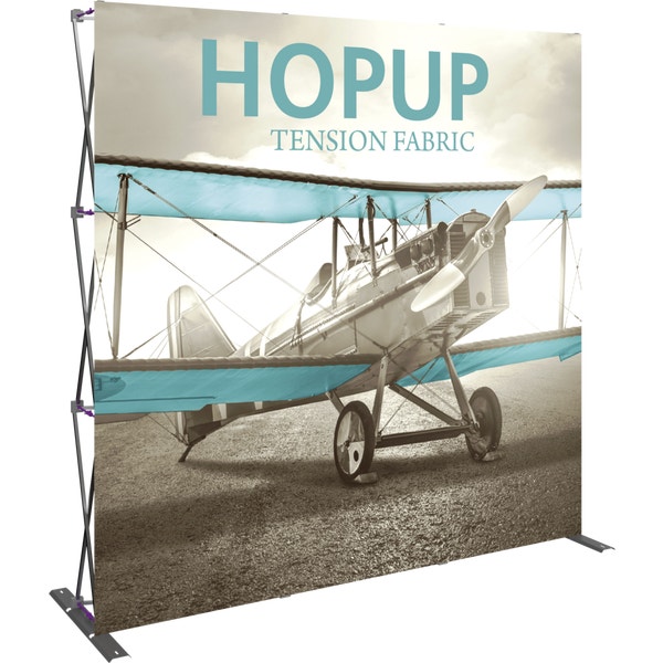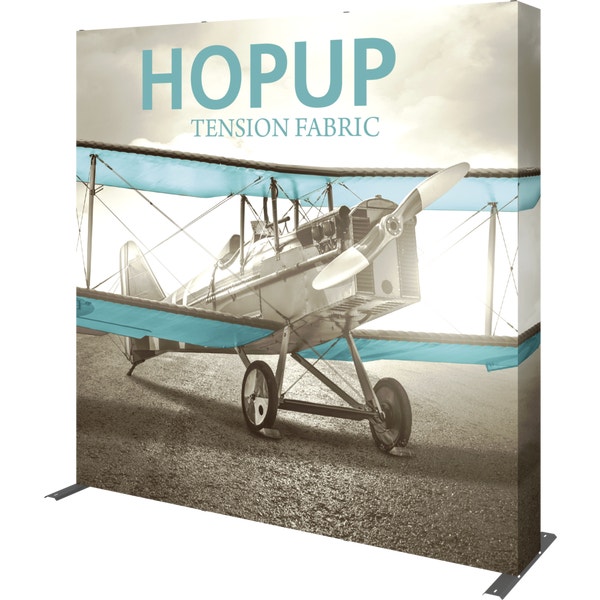Hopupâ„¢ 7.5ft (3 quad x 3 quad) straight full height pop up display is a versatile solution for your display needs. The graphics are pre-attached with hook and loop and expand the durable, lightweight aluminum frame for a display that sets up in seconds without the use of tools. Hopup is highly portable and perfectly complements booths from 10x10ft inline to large 20ft, 30ft and larger displays. A wheeled carry bag is included for ease of use in shipping and transportation.