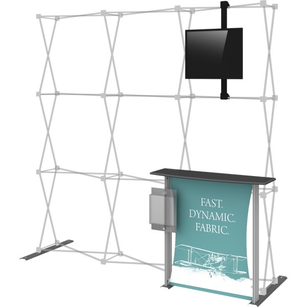 The Hopupâ„¢ tension fabric backwall Accessory Kit 02 provides customizable elements that drastically increase the functionality of 7.5ft Hopup Displays. Included is a monitor mount to display multimedia messaging and complement graphics, as well as a display counter, literature pocket and fabric graphic accents that provide additional space for branding and messaging. Accessories easily attach to displays, making for a quick set up. Backwall is not included.