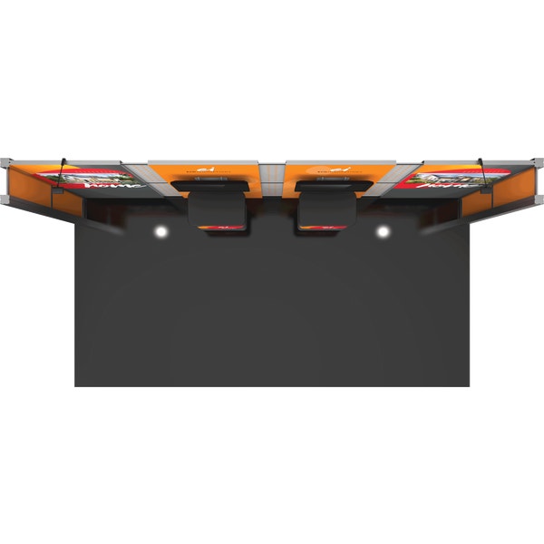 – Kit includes frame, four fabric graphic panels, ten Sintra infills, two counters, two 200 LED floodlights, two medium monitor mounts* and one SCRATE case