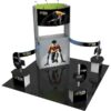 – Kit includes frame, accessible lockable storage space, four pillowcase graphics, two fabric graphic panels, three shaped Sintra panels, three counters, six small monitor mounts*, six 200 LED floodlights, two molded OCE storage cases and one woodcrate