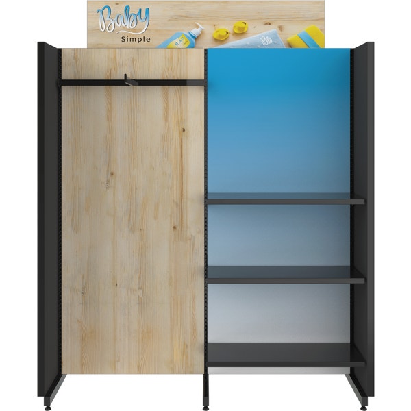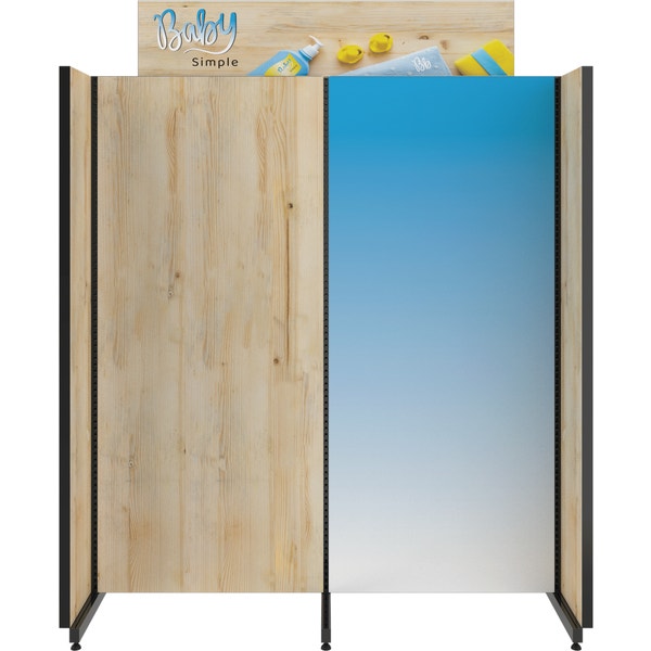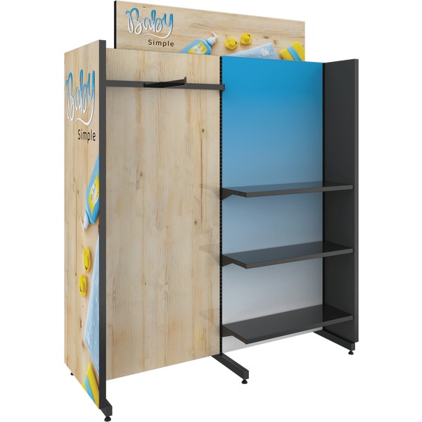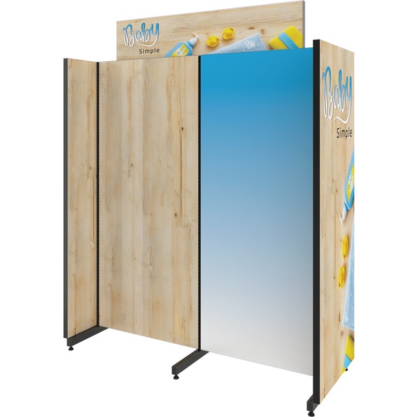 – End caps each hold a 28″W x 81″H SEG push-fit fabric graphic, black liners on inside