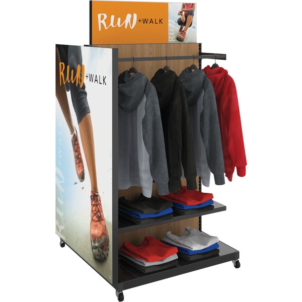 – End cap includes a 37″W x 57″H SEG push-fit fabric graphic and black liner on inside