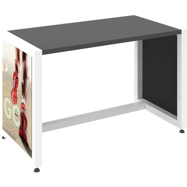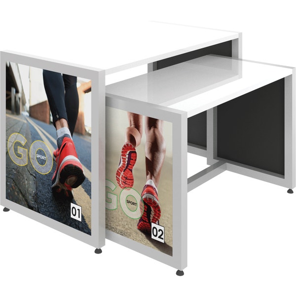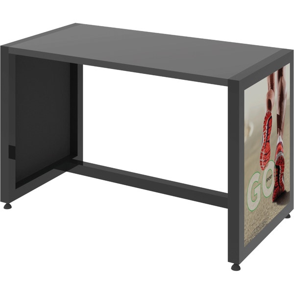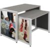 The MODify Nesting Table 02 is a perfect addition to any space. The sturdy metal frame provides excellent support and stability, while the elegant wooden tabletops add a touch of warmth and sophistication to any room. SEG push-fit fabric graphics are fantastic options for each side, and provide a creative way to show branding, messaging and color. MODify Nesting Table 02 slides underneath Nesting Table 01; the nesting feature makes the tables versatile and blends both style and function.