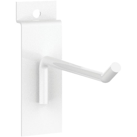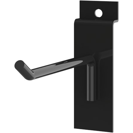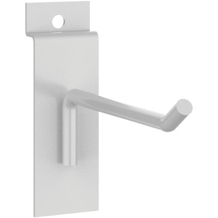 The MODify 4″ Slatwall Hook holds a variety of small merchandise and packaged products. The metal hook’s broad back-plate offers a stable and sturdy base, making it effortless to install on any MODify Slatwall. Available in silver, white, and black powder coating. Sold in pack of 5.