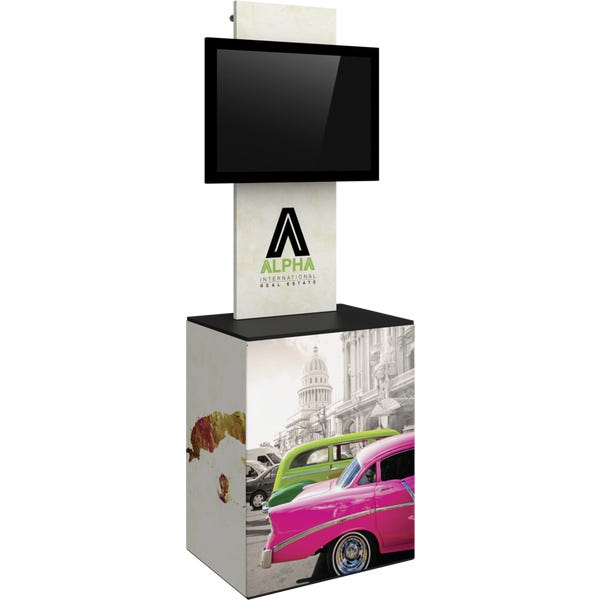 The Modulate™ Magnetic Counter accents the Modulate line of mix and match banners and reconfigurable exhibit kits. Couple Modulate banners with the Modulate Counter to create kiosks and workstations for use in tradeshow exhibits, at events and in more permanent settings. The Modulate Magnetic Counter comes with a magnetic, snap-button tube frame, an internal shelf, a printed stretch fabric graphic and a portable carry bag. The graphic spans the perimeter of the frame and attaches with hook and loop, making it easy to get inside the counter for what you need.