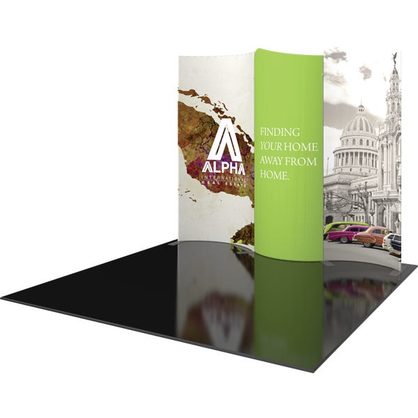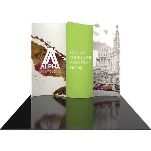 Modulate 10ft Kit 02 consists of three curved, magnetic fabric banners. Create an impact with a stylish 10ft wide inline display and/or repurpose as individual banners and maximize your value!