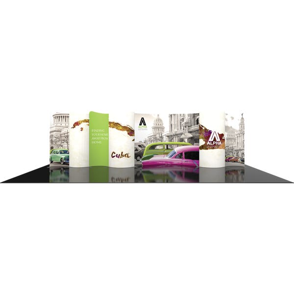 Modulate 30ft Kit 01 consists of seven curved, magnetic banners. Kit 01 reconfigures into a 20ft wide display, OR into two 10ft wide displays. Maximize your value in this versatile, reconfigurable system.