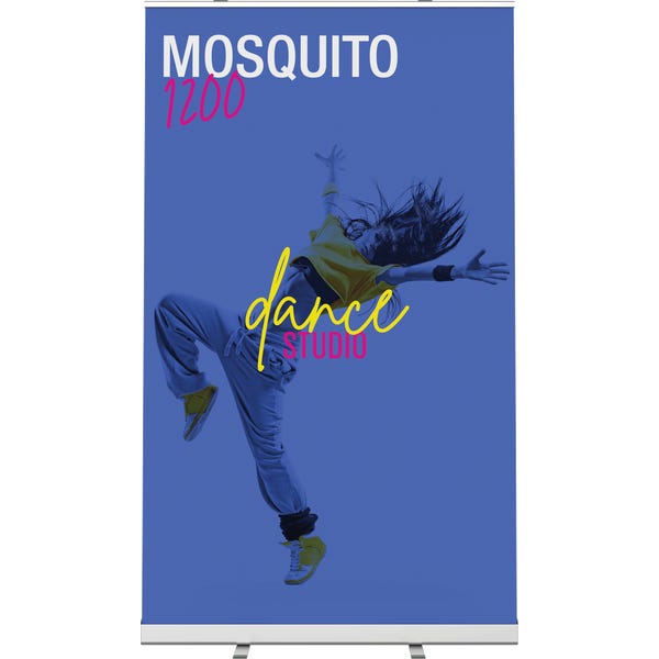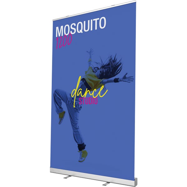 The Mosquito 1200 retractable banner stand provides versatility at an economical price. The stylish base features a silver finish and black endcaps. With simple features and great reliability, the Mosquito 1200 provides the option to use as a standalone banner stand, backwall, or in a large scale display.