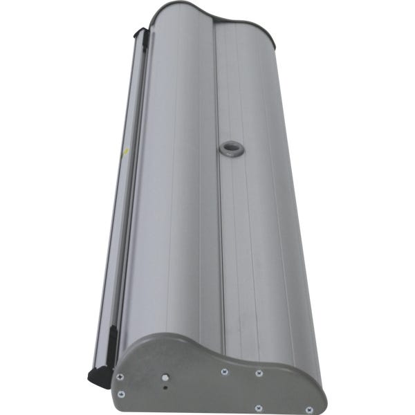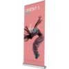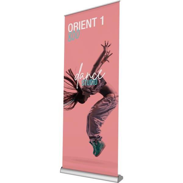 The Orient 800 is a simplistic and elegantly designed retractable banner stand. It is finished in anodized silver or black with heavy duty molded end caps. Variable graphic height between 60.5″ and 83.25″. Padded carry bag is included.