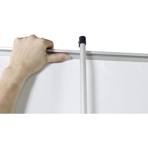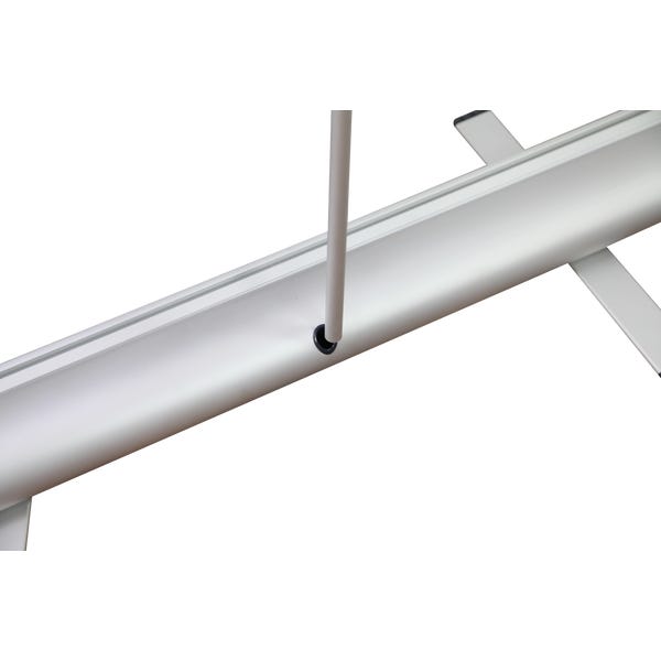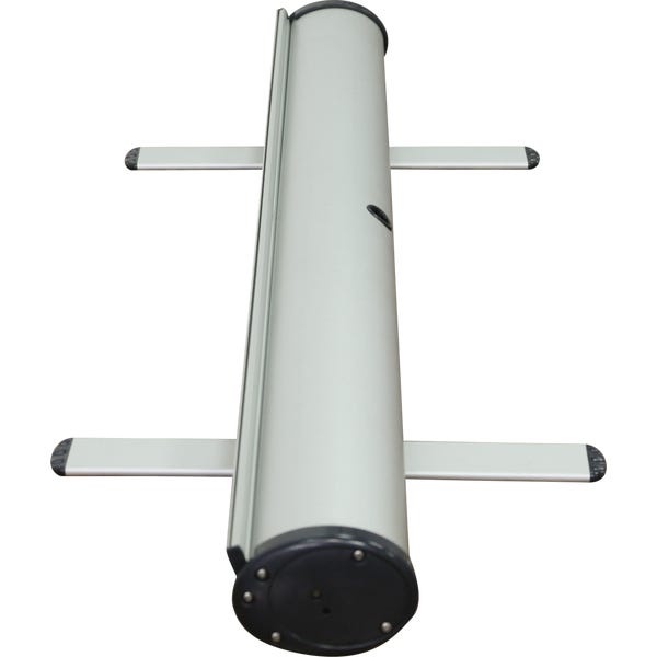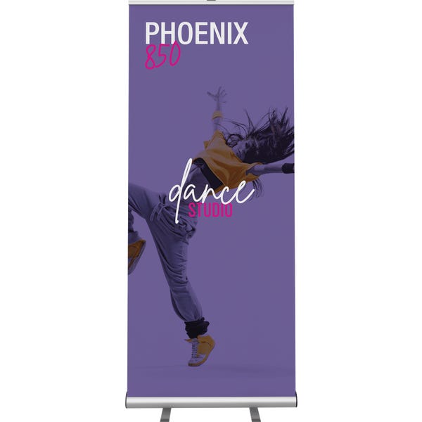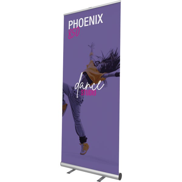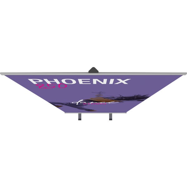 The Phoenix is an affordable retractable banner stand with a silver base and sleek dark gray endcaps. The Phoenix features a swivel foot base that increases the stability of the display, beneficial for high traffic environments. It is a great addition to any display on a budget.