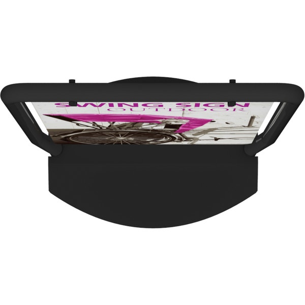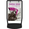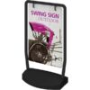 The Swing Outdoor Sign is a sleek and portable outdoor sign featuring an economy black steel tube frame, double ring mounting clips to keep graphic securely in place and wheeled, fillable base. The Swing Sign allows for easy graphic changes and replacements and comes with your choice of single or double-sided graphics printed on 6mm PVC board. The wheels make the sign easy to move!