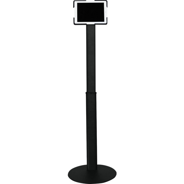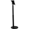 The Tablet Stand Small is a small, steel portable holder used to display a 7.5″-10.5″ iPad or Android tablet. It is perfect for use in retail environments, tradeshows and events. It can be positioned in either portrait or landscape configuration for versatility. The telescopic pole allows you to adjust the height to suit your needs. Security screws and a specialized Allen key make the unit both durable and theft resistant. The Small Tablet Stand is offered in black.