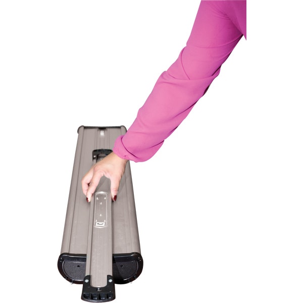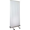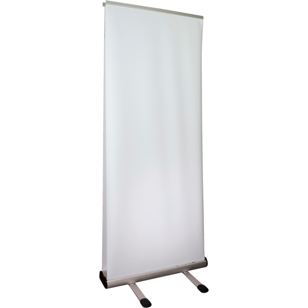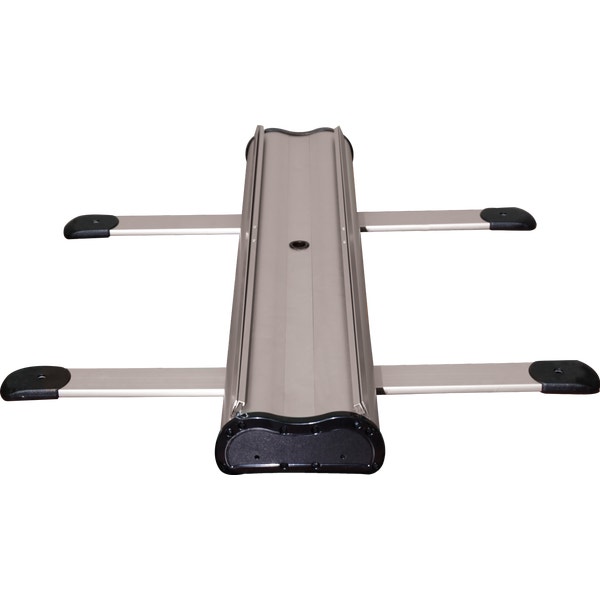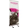 The Thunder Banner Stand is a large, sturdy double-sided outdoor retractable banner stand. This display is packed with features for added stability and utility, including two large, twist-lock feet, a three-piece bungee pole and stakes to secure the banner stand into the ground. A carry case is also included for shipping and transportation.