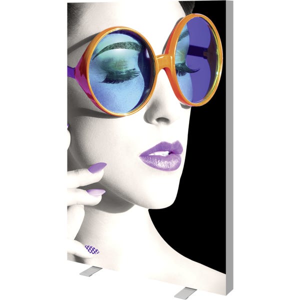 The Vector Frameâ„¢ Essential Light Box Rectangle 03 features a sleek 4″ white aluminum frame and seamless push-fit fabric graphics. This sophisticated light box has superior aesthetic and assembly qualities and requires no tools for assembly! Simply slide each frame piece together, apply the push-fit fabric graphics and plug in. LED lighting comes pre-attached to the frame and swivel lock feet give added stability. This display is ideal for retail, interior and event environments.