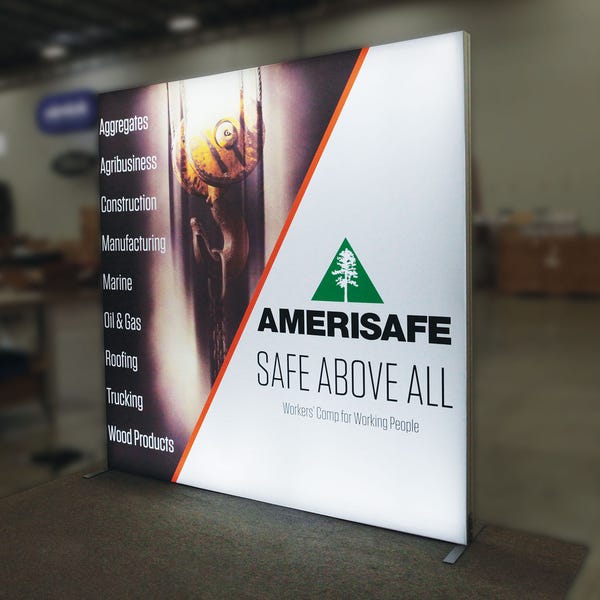 Vector Frameâ„¢ fabric light box Square 04 features durable 100mm aluminum extrusion frames, push-fit backlit fabric graphics and LED edge lighting, and measures 95.35″W x 94.74″H . Single and double-sided graphic options are available. LED lights come adhered to the frame, making set-up as simple as assembling the frame, applying the push-fit graphics and plugging in the electrical cord! Vector Frame Light Box S04 is ideal for use in retail, event, corporate and trade show environments as an illuminated messaging solution.