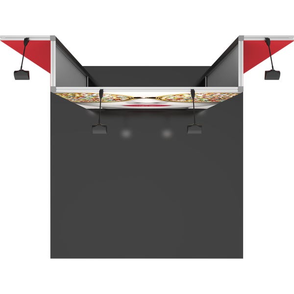 – Kit includes frame, five fabric graphics, four 120 watt floodlights, one wheeled molded case