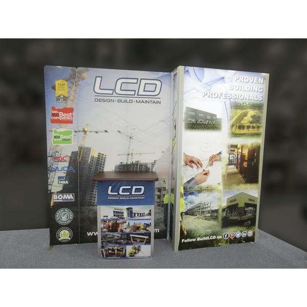 – Kit includes frame, one illuminated fabric graphic panel, four rigid graphic accents, and one wheeled molded case