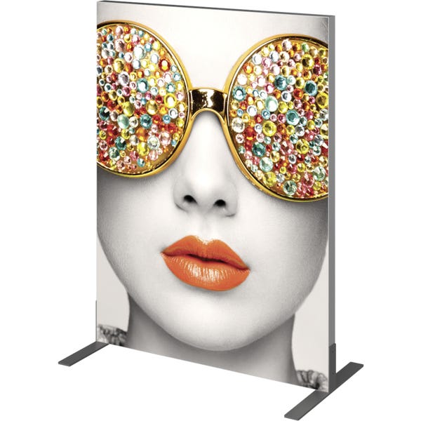 Vector Frameâ„¢ fabric banner R01 is a modern, extrusion-based fabric graphic banner display measuring 36.3″W x 47.49″H. The 2″ aluminum extrusion frames are easy to assemble and disassemble and come with the choice of single-sided or double-sided push-fit SEG fabric graphic murals. Vector Frame banner R01 can be used to display messaging or art in a retail, corporate, event or trade show environment and more.