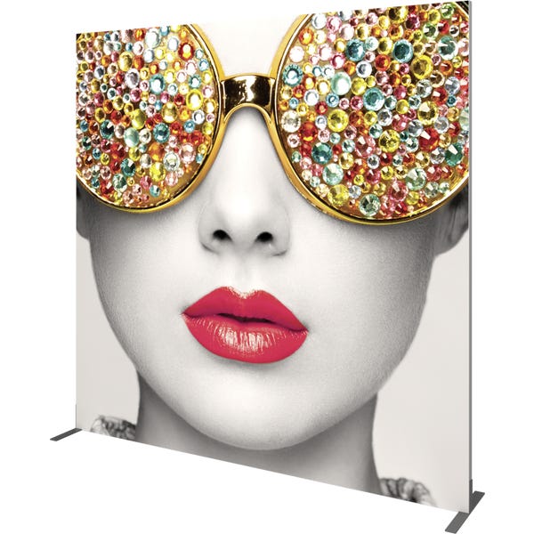 Vector Frameâ„¢ fabric banner S04 is a modern, extrusion-based fabric graphic banner display measuring 95.35″W x 94.74″H. The 2″ aluminum extrusion frames are easy to assemble and disassemble and come with the choice of single-sided or double-sided push-fit SEG fabric graphic murals. Vector Frame banner S04 can be used to display messaging or art in a retail, corporate, event or trade show environment and more.