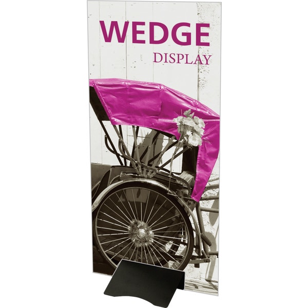 The Wedge is a cost effective sign support that is simple to use. Quickly and easily create displays with the Wedge and a rigid or poster board graphic, and combine multiple units to create longer and taller displays. The Wedge sign stand is available in black and features a five year warranty.